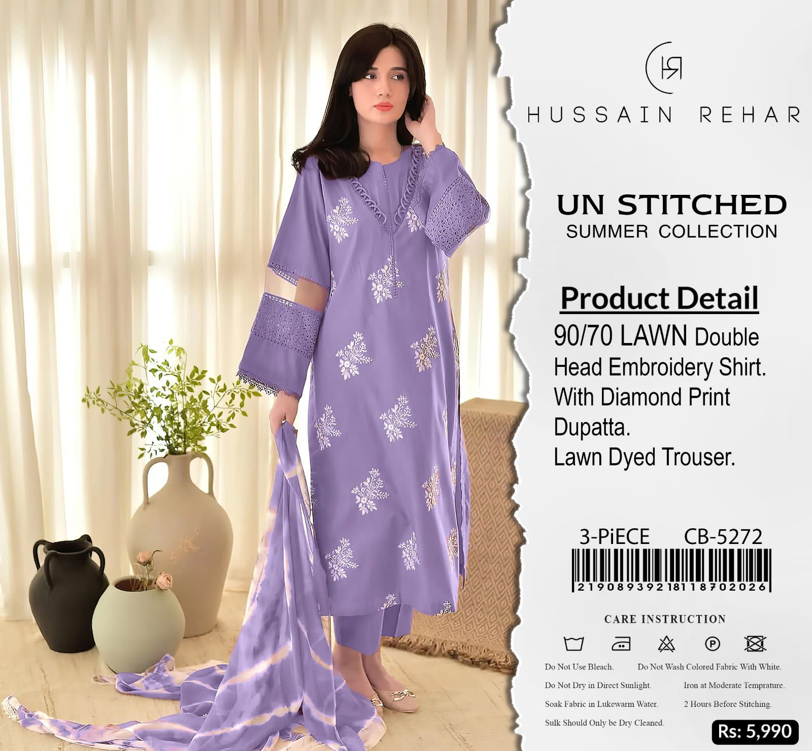 Hussain Rehar Lawn Embroidered 3Piece D-002